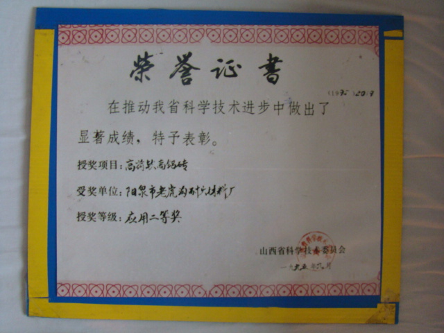 熱風(fēng)爐用低蠕變高鋁磚、高荷軟高鋁磚獲省科技進步二等獎,微膨脹高鋁磚列入火炬計劃項目,炭素焙燒爐用特種高鋁磚已批準國家專利